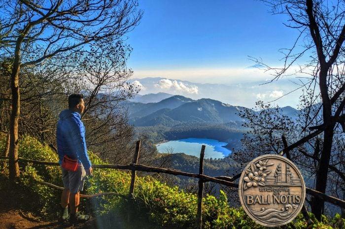 Daya Tarik: Pemandangan langsung ke kawah Talaga Bodasyang berwarna biru toska dari ketinggian.