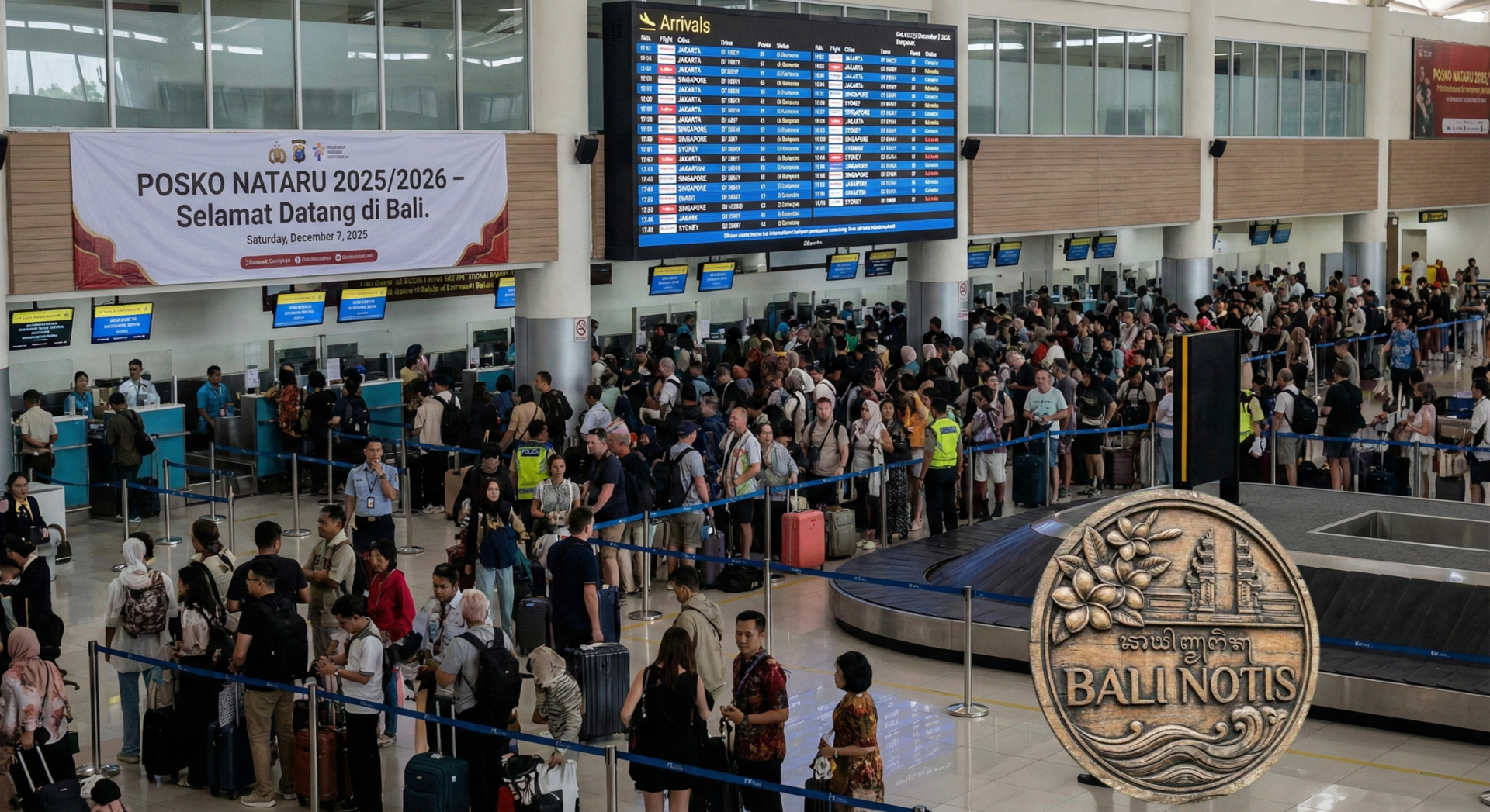 Denpasar, Balinotis.com — Menjelang libur Natal dan Tahun Baru 2025/2026, Bandara Internasional I Gusti Ngurah Rai kembali mencatat lonjakan signifikan jumlah penumpang. Peningkatan arus kedatangan wisatawan domestik maupun mancanegara mulai terlihat sejak awal Desember dan diperkirakan mencapai puncaknya pada tanggal 22–31 Desember 2025.