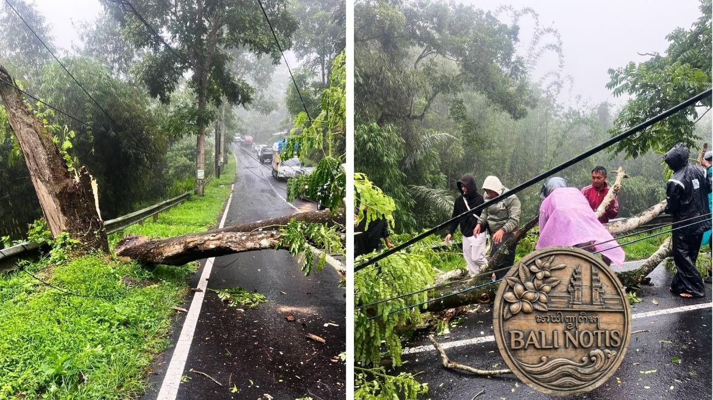 Berdasarkan informasi dari pihak terkait, intensitas hujan yang cukup tinggi disertai angin kencang menyebabkan beberapa titik rawan longsor di jalur menuju dan di sekitar kawasan Kintamani mengalami gangguan. Selain itu, beberapa pohon besar dilaporkan tumbang dan menutup sebagian badan jalan, sehingga menghambat arus lalu lintas serta meningkatkan risiko kecelakaan.