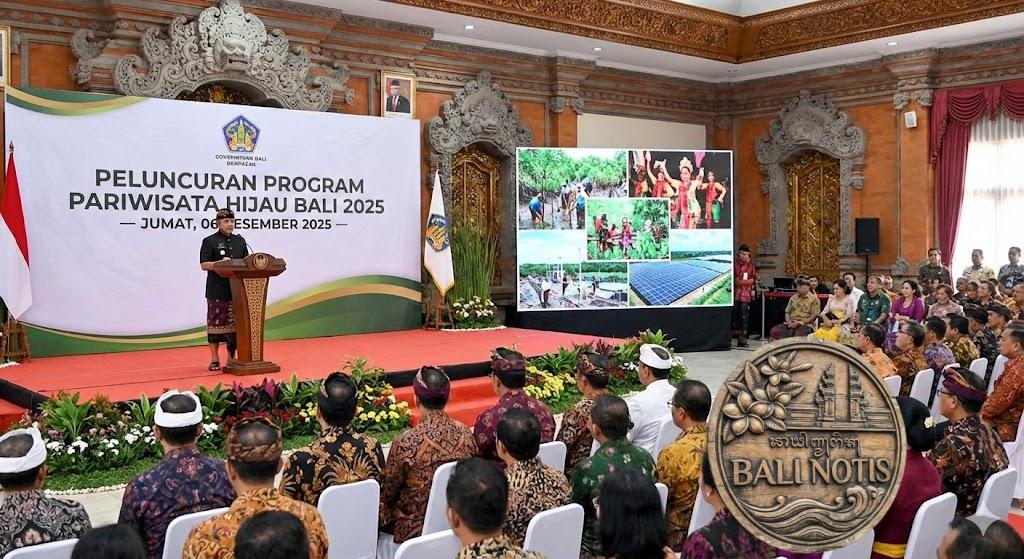 Denpasar, Balinotis.com — Pemerintah Provinsi Bali kembali menunjukkan keseriusannya dalam memperkuat pariwisata berkelanjutan dengan meluncurkan Program Pariwisata Hijau 2025. Pengumuman program ini dilakukan hari Jumat (06/12/2025) di Gedung Wiswa Sabha Utama, Kantor Gubernur Bali. Ini adalah langkah penting untuk memperkuat citra Bali sebagai destinasi yang menjaga keseimbangan antara alam, budaya, dan pengalaman wisatawan.